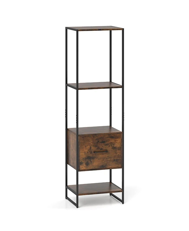 Slickblue 51 Inch Bookcase with Drawer and 7 Storage Compartments