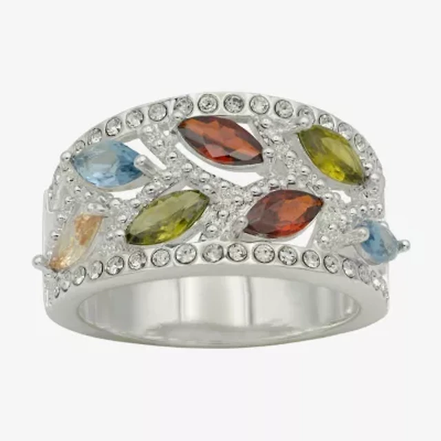 Sparkle Allure Leaf Womens 6.5MM Multi Color Cubic Zirconia Pure Silver Over Brass Marquise Band