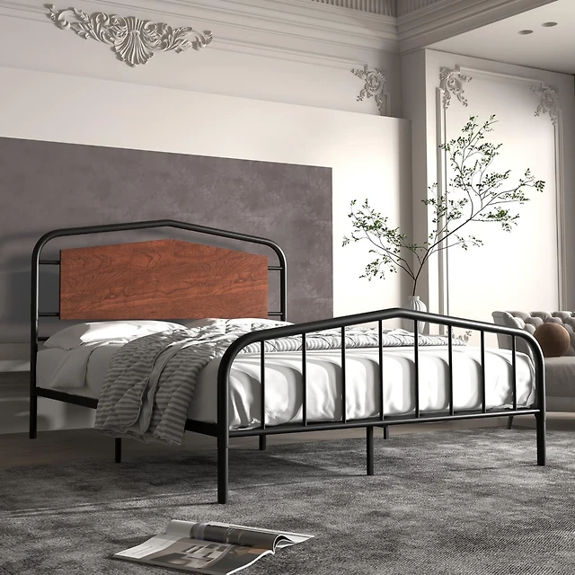 gaomon Queen Size Platform Bed Frame with Rustic Vintage Wood Headboard, Mattress Foundation Metal Slats Support, No Box Spring Needed, Brown