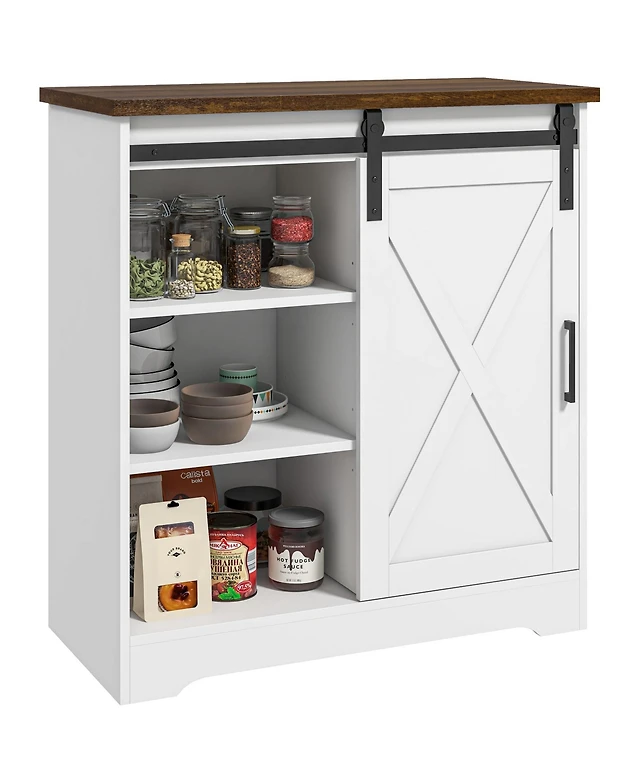 gaomon Farmhouse Coffee Bar Cabinet with Storage, 47" Wine Bar Cabinet with Sliding Barn Door, Buffet Sideboard Cabinet