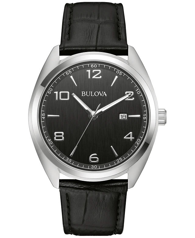 Bulova Men's Automatic Classic Surveyor Black Leather Strap Watch 41mm