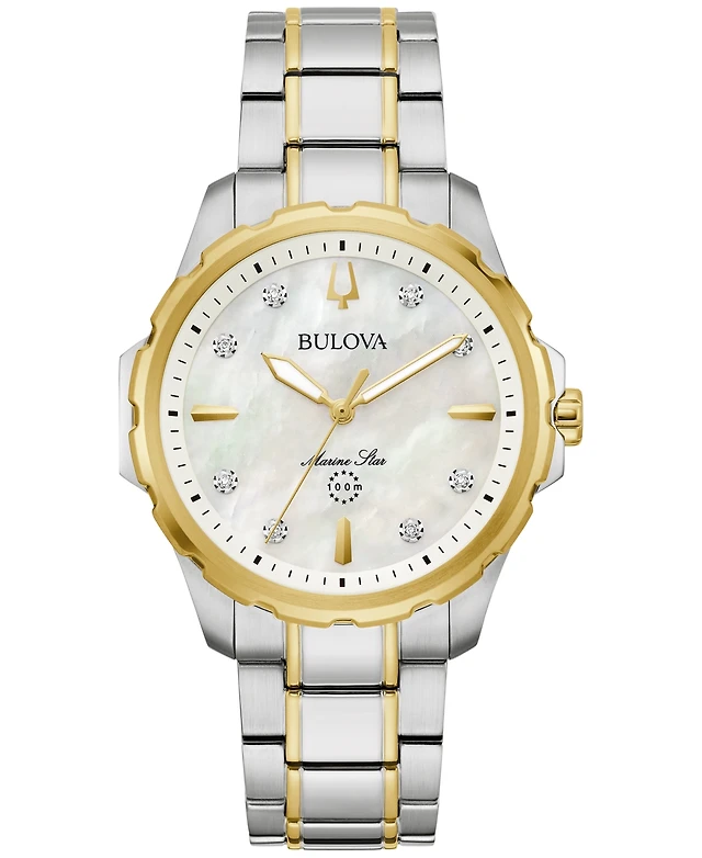 Bulova Women's Marine Star Diamond Accent Two-Tone Stainless Steel Bracelet Watch 36mm