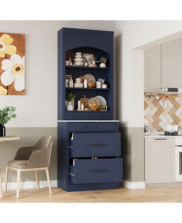 Streamdale Furniture 72" Fluted Pantry Cabinet with Drawers & Spice Rack - Black