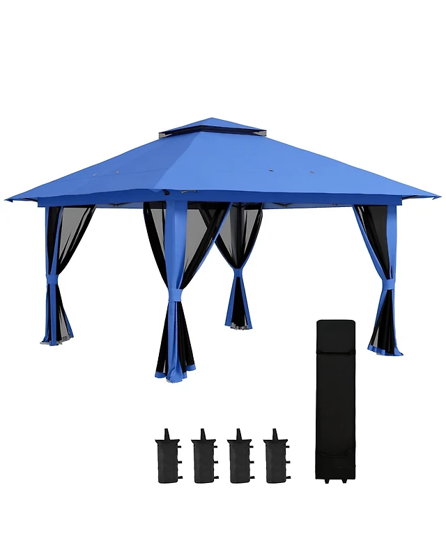 Outsunny 11' x 11' Pop Up Gazebo Outdoor Canopy Shelter with 2-Tier Soft Top, and Removable Zipper Netting, Event Tent with Large Shade, and Storage B