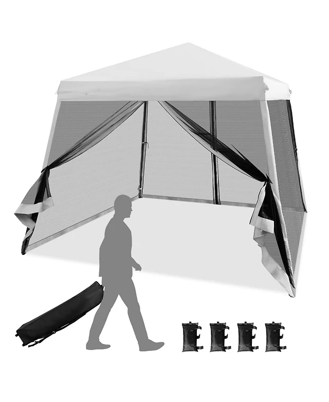 10 x 10 Feet Pop Up Canopy with with Mesh Sidewalls and Roller Bag-White