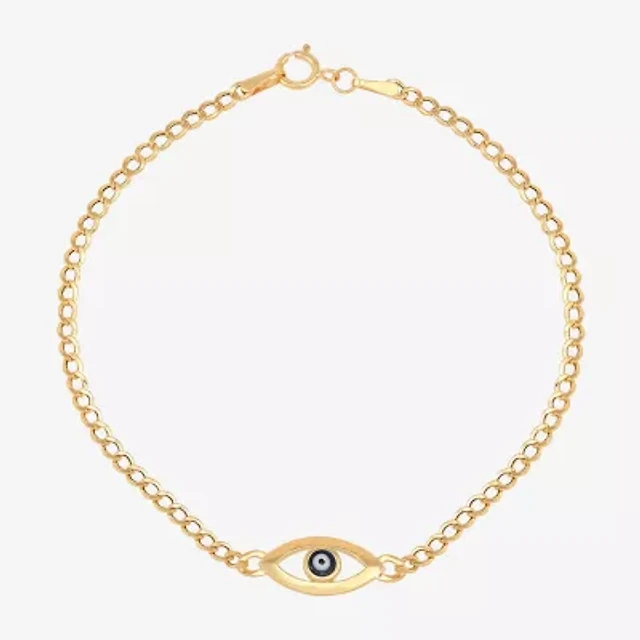 Hamsa Hand & Glass Evil Eye Charm Bracelet in 10k Gold