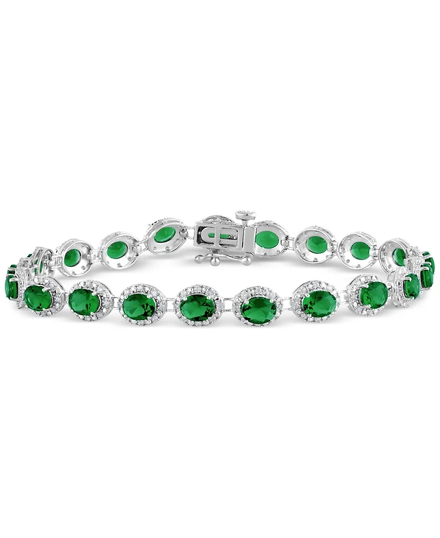 Emerald (8 ct. t.w.) & Diamond (3/4 Halo Tennis Bracelet 14k White Gold (Also Ruby Sapphire)