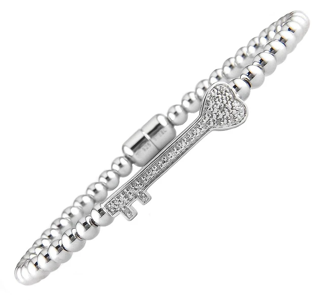 18K WHITE GOLD MOSAIC DIAMOND ACCENT BANGLE