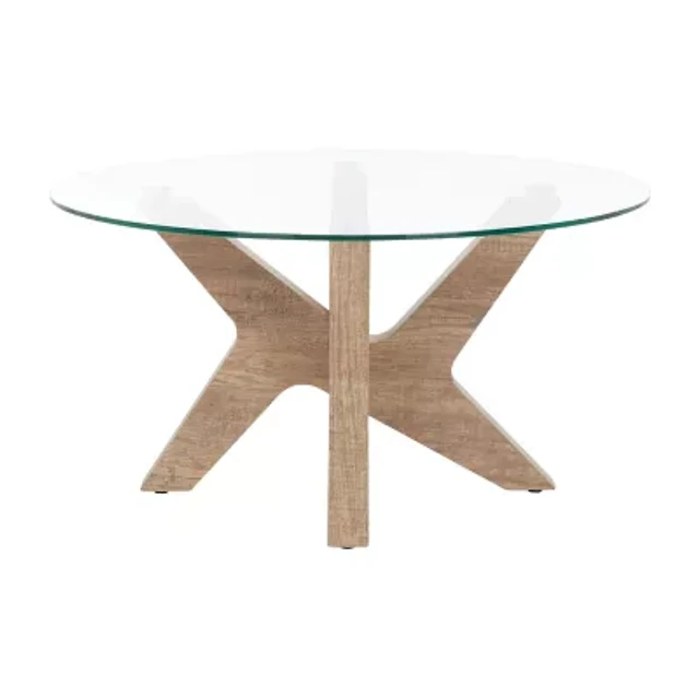Newbury Glass Coffee Table With Round Matte Frame And Vertical Legs