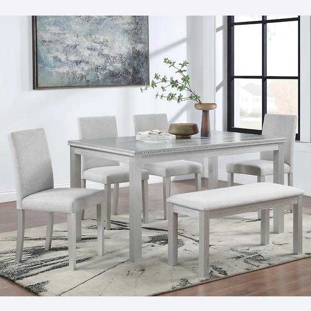 4 Piece Dining Table Set with Bench and 2 Stools-White