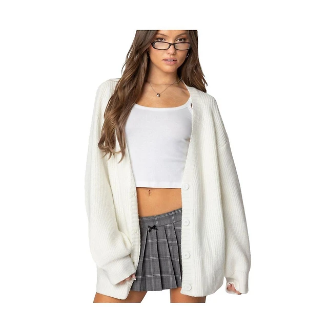 Edikted Women's Mara Contrast Textured Knit Cardigan