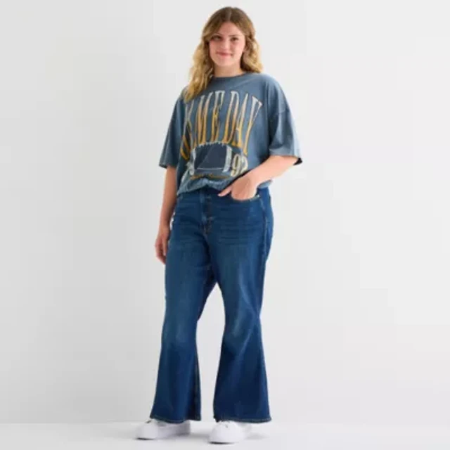 Arizona Curvy Womens Juniors Plus High Rise Flare Leg Jean