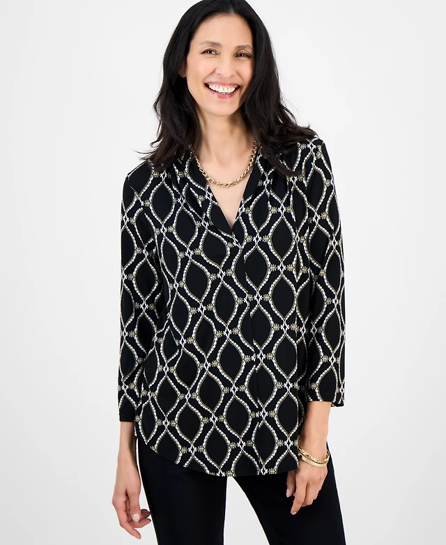 Charter Club Women's 100% Linen Blouson-Sleeve Peplum Top, Macy's Exclusive