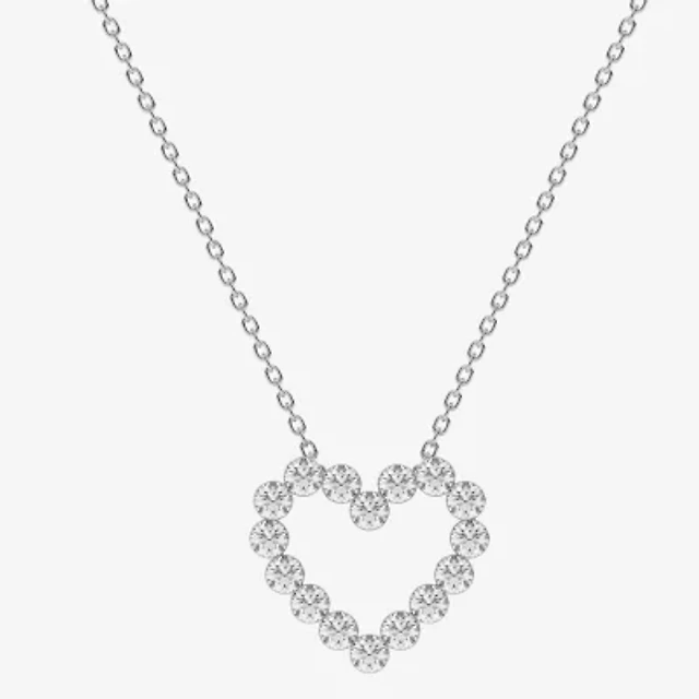 Floating Diamonds (F / Vs2) Womens 1 CT. T.W. Lab Grown White Diamond 14K Gold Heart 18 Inch Pendant Necklace