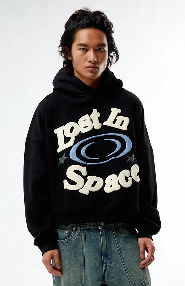Pacsun Lost Space Puff Graphic Cropped Hoodie