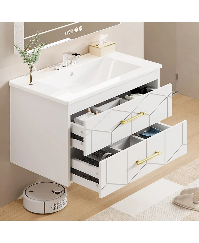 Slickblue Wall Bathroom Mirror Cabinet with Built-In Storage Shelves