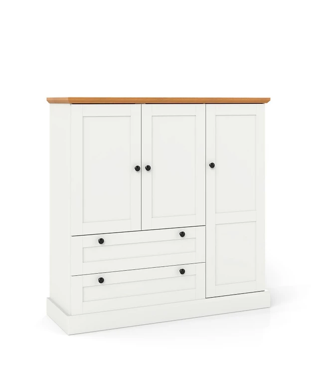 Basicwise Wooden Kitchen Pantry Storage Cabinet with Drawer, Doors and Shelves, White