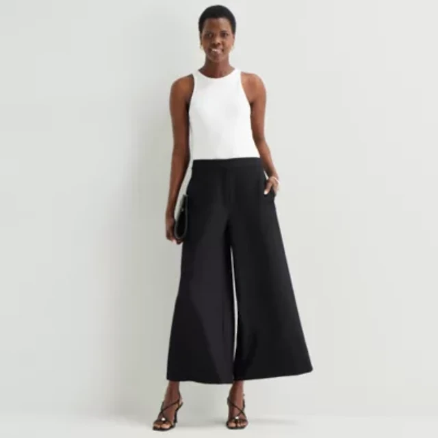 Liz Claiborne Linen Womens Wide Leg Mid Rise Pull-On Pant