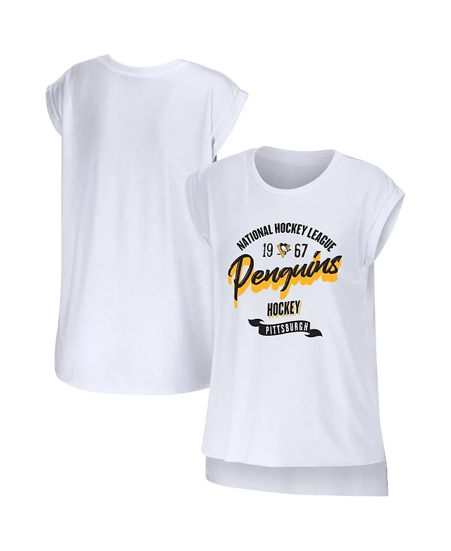 Women's Wear by Erin Andrews White Pittsburgh Penguins Greetings From Muscle T-shirt