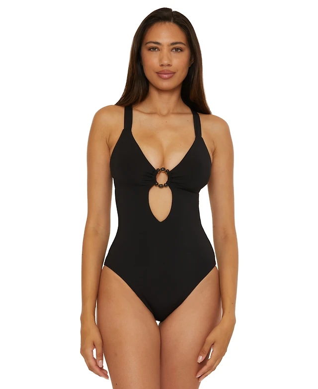 Be by CHETTA B Womens Short Sleeve Leaf Fit + Flare Dress