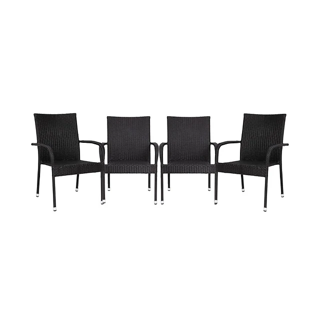 Slickblue Set of 4 Patio Rattan Dining Chairs with Acacia Wood Armrests