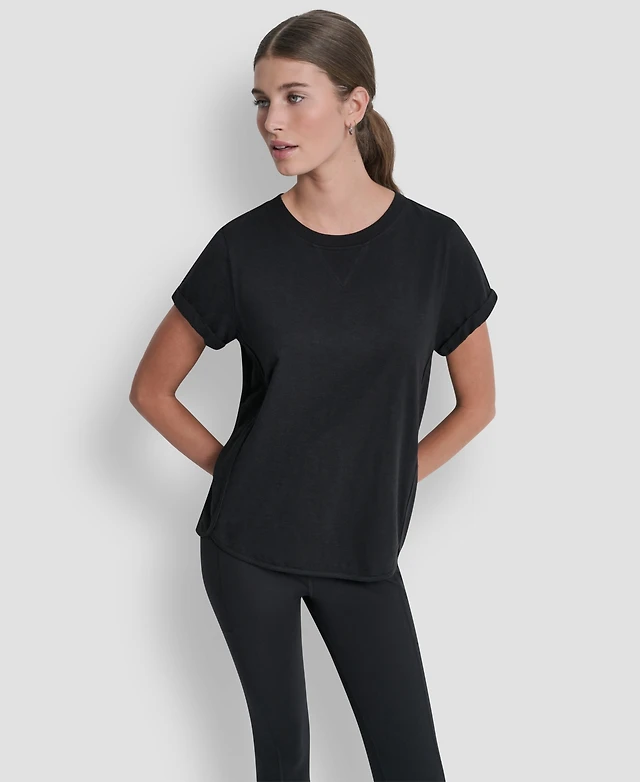 Dkny Sport Women's Embroidered Crewneck Logo Roll-Sleeve Top