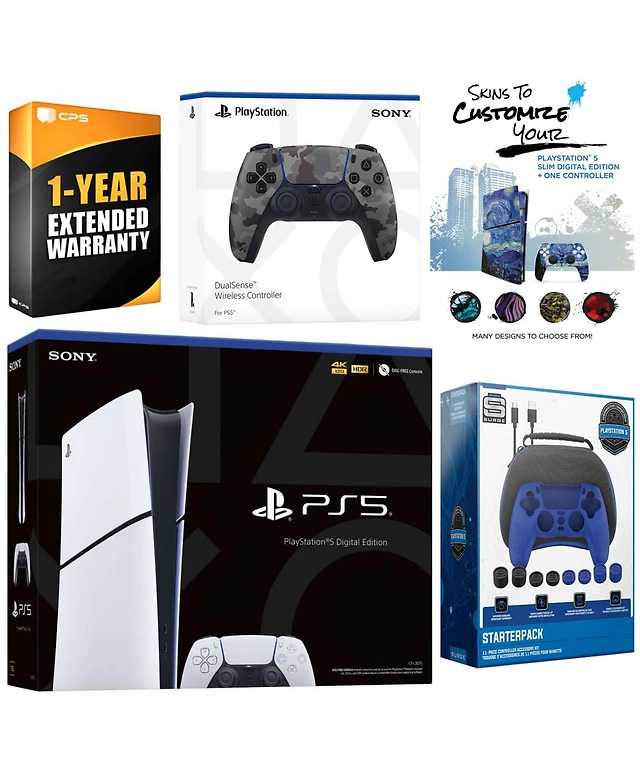 Sony Playstation 5 Slim Digital with Extra Chroma Indigo Controller, Gamer Starter Kit and MightySkins Decal Voucher + 1 Year Cps Extended Warranty