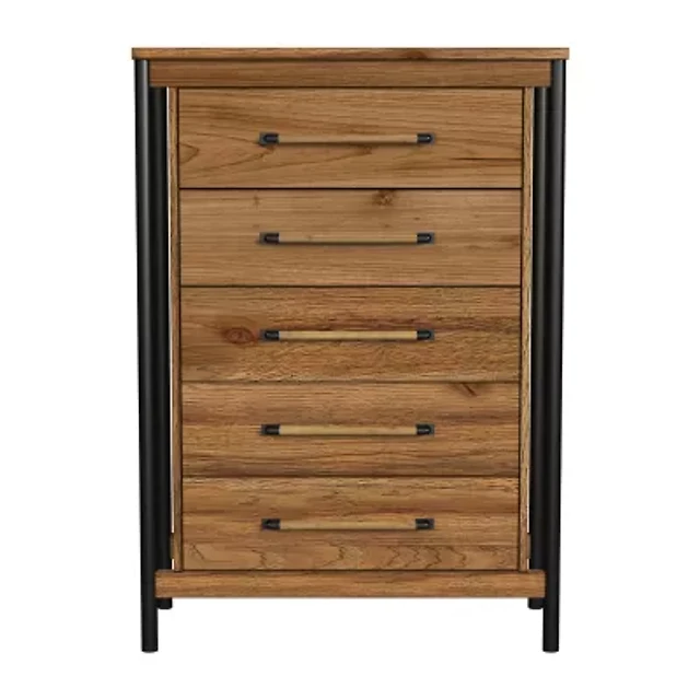 Tall Storage Dresser with 5 Pull-out Drawers for Bedroom Living Room-Walnut