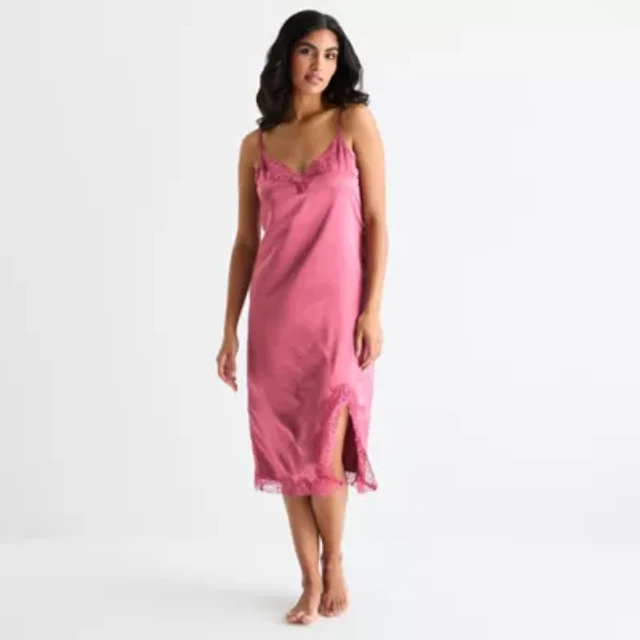 Ambrielle Womens Satin Sleeveless V Neck Chemise