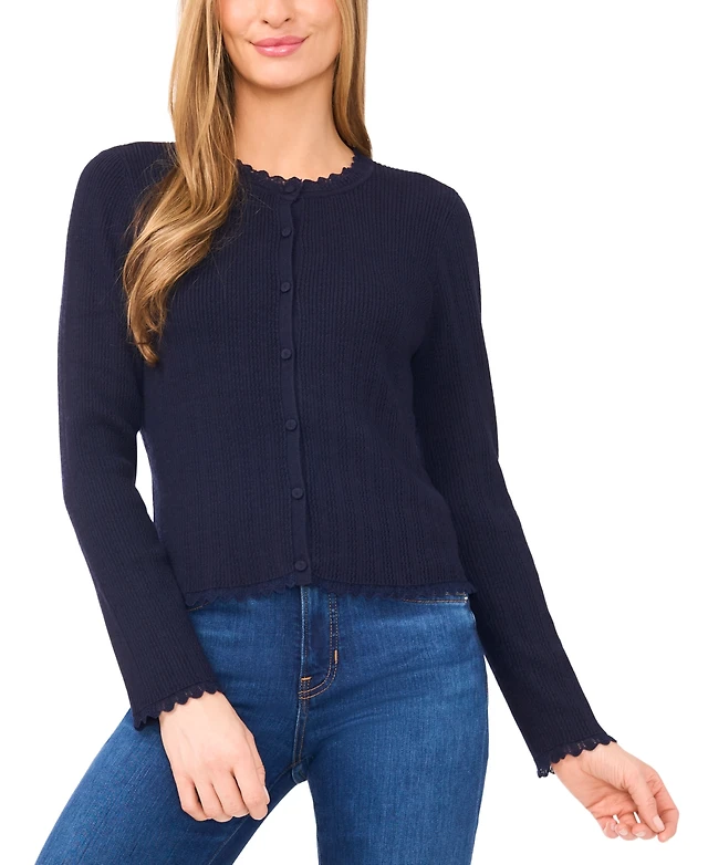 CeCe Women's Long Sleeve Button-Down Ruffle Top