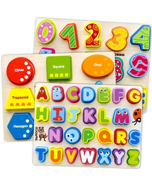 Quokka 3xSET Chunky Wooden Puzzles for Toddlers 1-3 - Numbers Alphabet Shapes