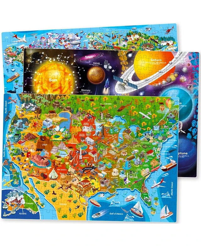 Quokka 3 Pack Puzzles for Kids Ages 8-10 and Adults - World, Usa Map & Space