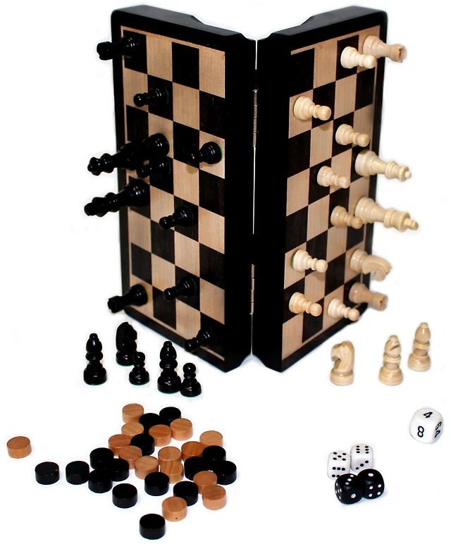 We Games Walnut 7-Games-in-1 Combination Game Set - Includes Chess, Checkers, Backgammon, Dominoes, Cribbage, Poker, Dice and Cards