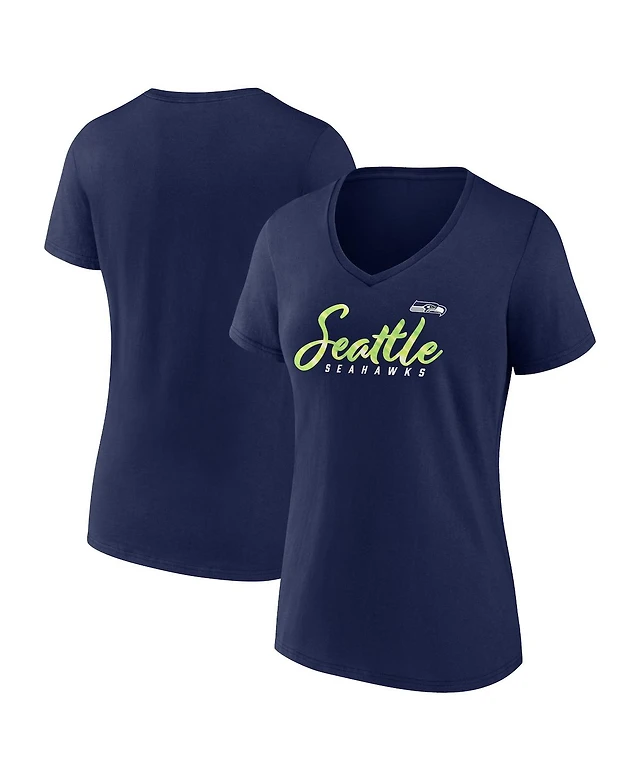 Women's Fanatics College Navy Seattle Seahawks Shine Time V-Neck T-shirt