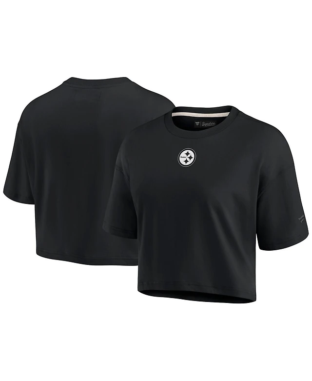 Women's Fanatics Signature Black Pittsburgh Steelers Super Soft Short Sleeve Cropped T-shirt