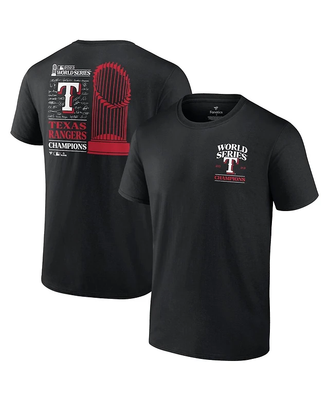Big Boys Fanatics Black Texas Rangers 2023 World Series Champions Signature Roster T-shirt