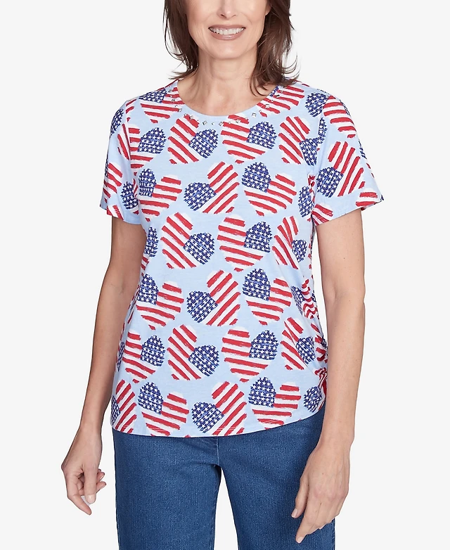 Alfred Dunner Women's Flag Heart Top with Side Ruching