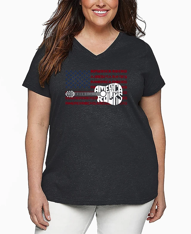 La Pop Art Plus America Rocks Word V-Neck T-Shirt