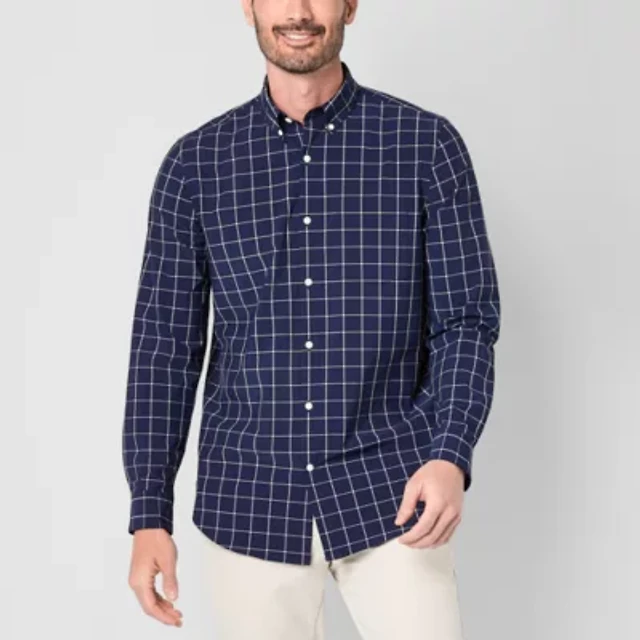 Shaquille O'Neal XLG Knit Mens Long Sleeve Regular Fit Big and Tall Button-Down Shirt
