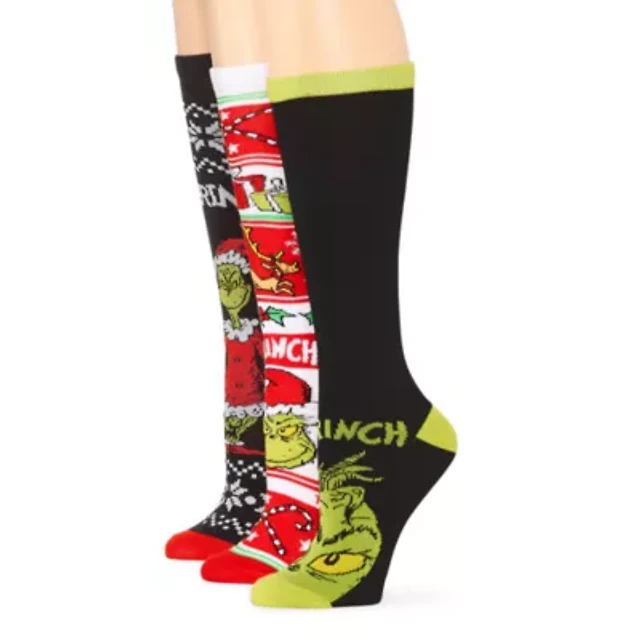 Unisex Adult 3 Pair Grinch Knee High Socks
