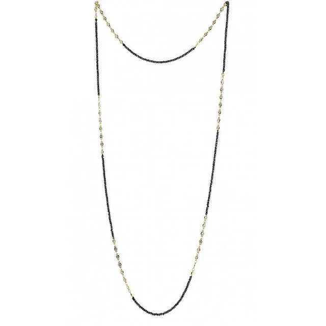 Designer Gold White Gold with Bezel Diamond & Alternating Beads Chain Necklace Length 18"