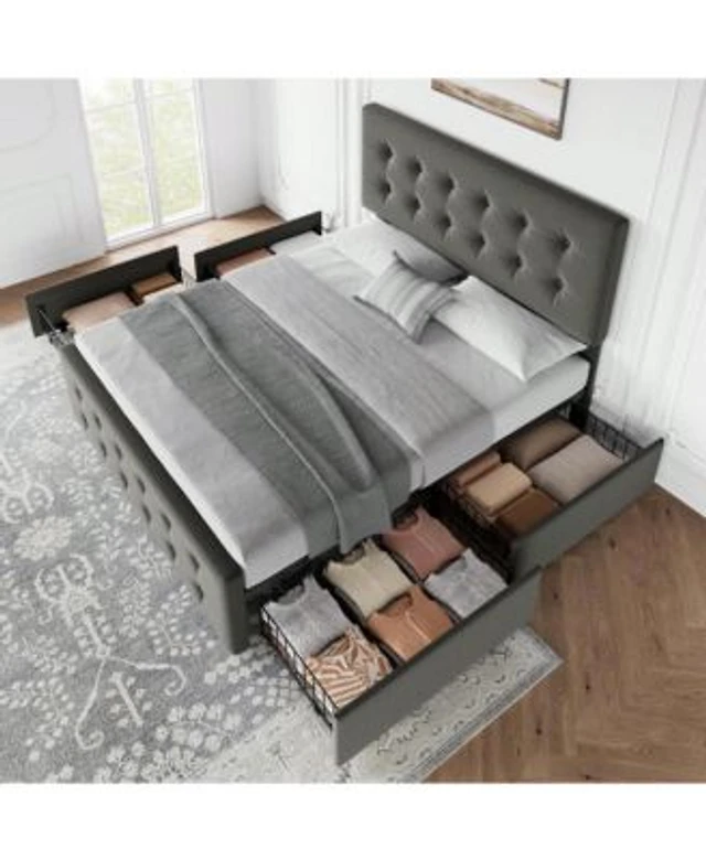 Gaomon Bed Framewith 4 Storage Drawers Headboard Linen Upholstered Platform Bed Frame With Wooden Slats Support Button Tufted Design No Box Spring Needed