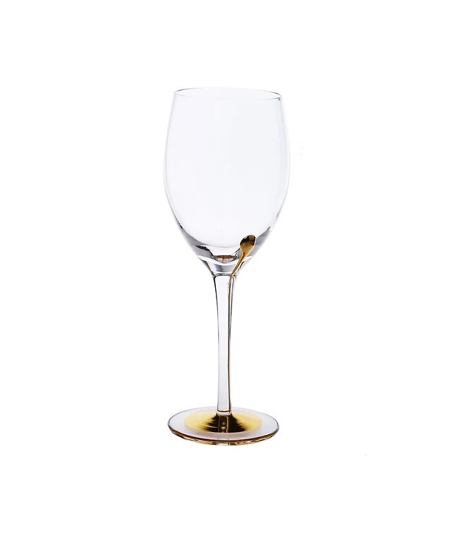 Classic Touch Set of 6 Pebble Glass Wine Glasses with Gold Tone Rim