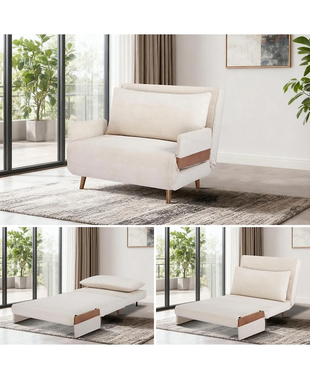 Streamdale Furniture Convertible Sleeper Sofa Bed with Pillow - Corduroy Folding Mattress Couch - Beige