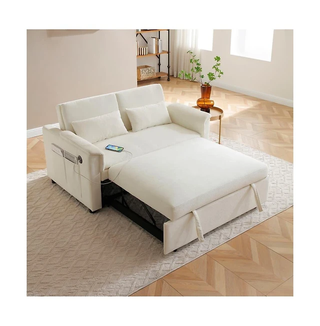 Boyel Living 56.9" Loveseat Sofa Bed, Pull-Out Sleeper, Linen, Reversible Backrest, Side Pockets, Usb Ports, Phone Holder