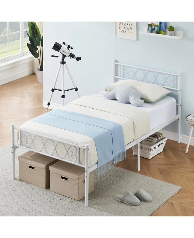 gaomon Twin Size Bed Frame for Kids Metal Bed with Headboard & Footboard Heavy Duty Slats No Box Spring White