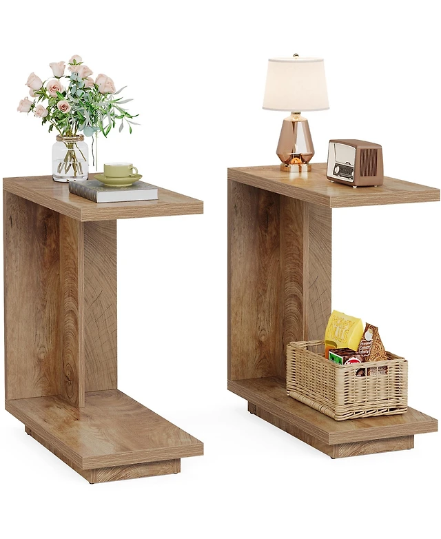 Tribesigns Wood End Table Set of 2, Side Table with Storage Space, Narrow Nightstand, Rustic Brown
