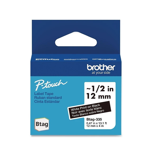 Brother P-Touch Btag335 0.47 in. x 13.1 ft. Genuine P-Touch BTAG Label Tapes - White on Black
