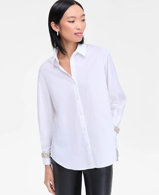 Tommy Hilfiger Women's Long Sleeve Contrast Trim Button-Up Blouse
