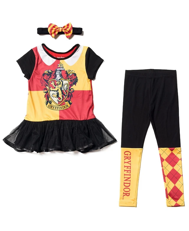 Harry Potter Little Girls Gryffindor Ravenclaw Cosplay T-Shirt Dress Leggings and Headband 3 Piece Outfit Set to